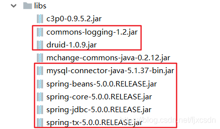 ①导入Spring的5个jar包 + 数据库驱动包 +数据库连接池包(druid)