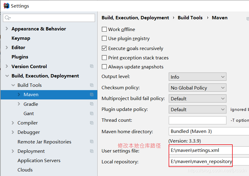 由于我的本地仓库不在C盘,所以需要进行路径的修改:File→Settings→搜索Maven