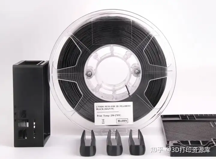 此前,PETG-ESD凭借稳定的表面电阻和良好的打印适配性在市场上获得不少好评。其线材电阻低至10^7Ω/m,打印模型表面电阻可达10^9Ω/m,能够有效防止静电积累,降低电子元器件被击穿的风险。
