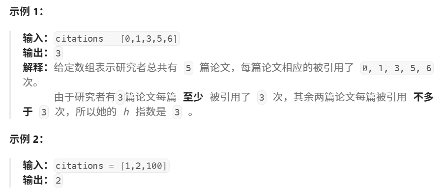 h 指数是指(n 篇论文中)至少 有 h 篇论文分别被引用了至少 h 次。