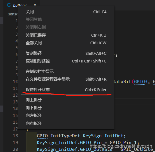 此时点击“保持打开状态”,该文件名的斜体会消失,则该文件会一直保持打开,再打开新文件也不会被覆盖了