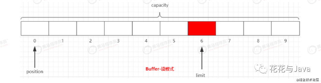position:Buffer由写模式变化为读模式,position会从置0,在进行读取数据时,position向前移动到下一个可读的位置。