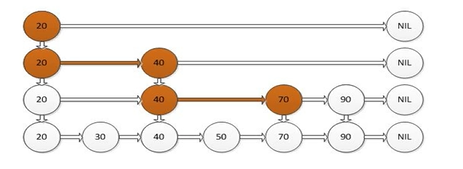 有了索引之后如果要在70之后增加数据只要查询3次就可以,而不用去遍历整个链表,他的查询速度已经接近红黑树了,但是实现上要比红黑树简单的多
