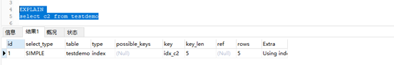表示相应的select操作中使用了覆盖索引(Covering Index),避免访问了表的数据行,效率不错!