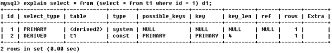 SELECT * from (select * from t2 where id = 1) d1;