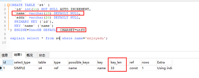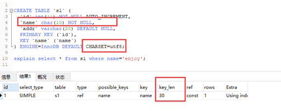 复合索引有最左前缀的特性,如果复合索引能全部使用上,则是复合索引字段的索引长度之和,这也可以用来判定复合索引是否部分使用,还是全部使用