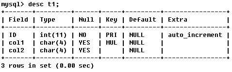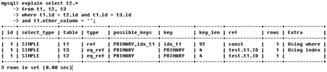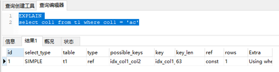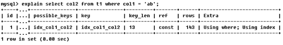 EXPLAIN select col2 from t1 where col1 = 'ab'