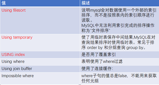 如果没有同时出现using where,表明索引用来读取数据而非执行查找动作