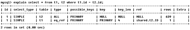 比如:EXPLAIN select * from table1