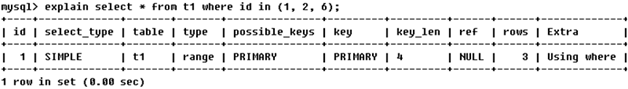 EXPLAIN select * from t1 where id in(1,2)