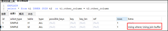 Using where 与 using join buffer