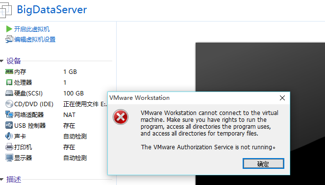 这个错误是VM的认证服务没有运行