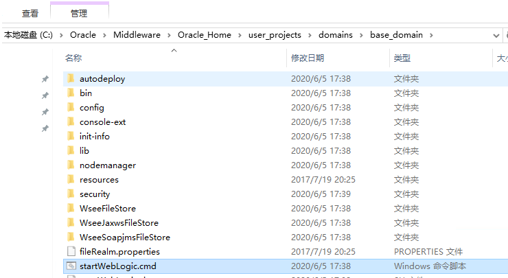 C:\Oracle\Middleware\Oracle_Home\user_projects\domains\base_domain找到startWebLogic.cmd点击启动,可发送到桌面快捷方式