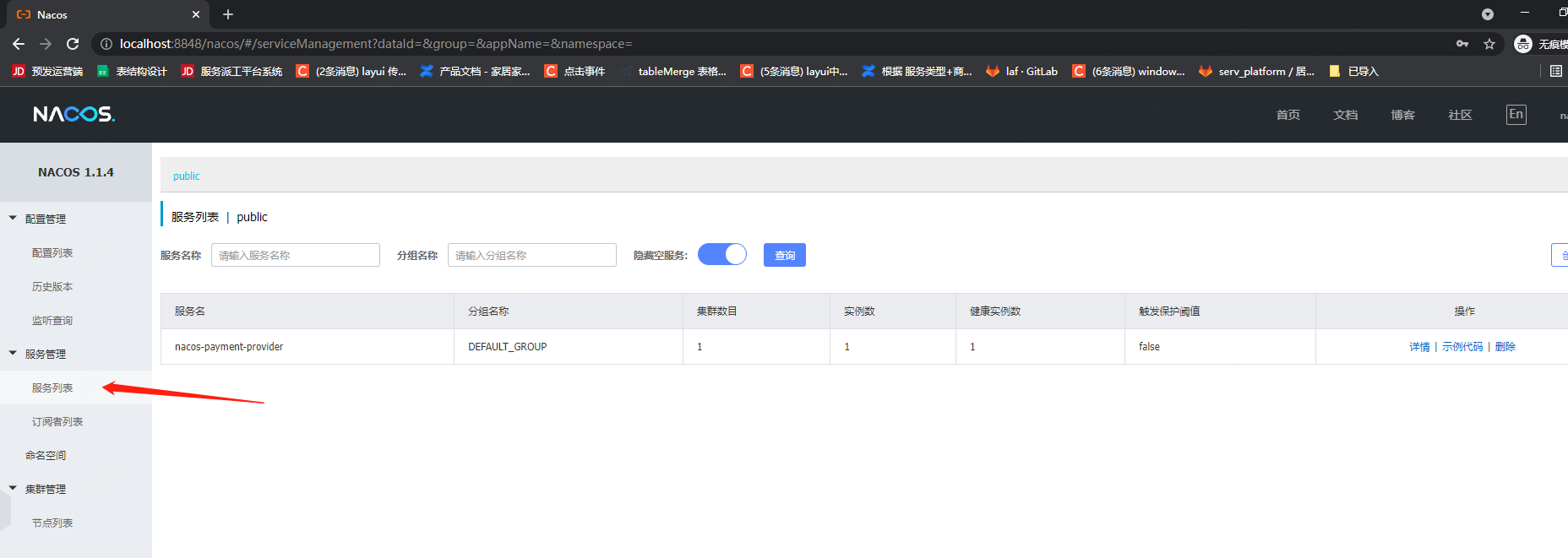 - 检查Nacos