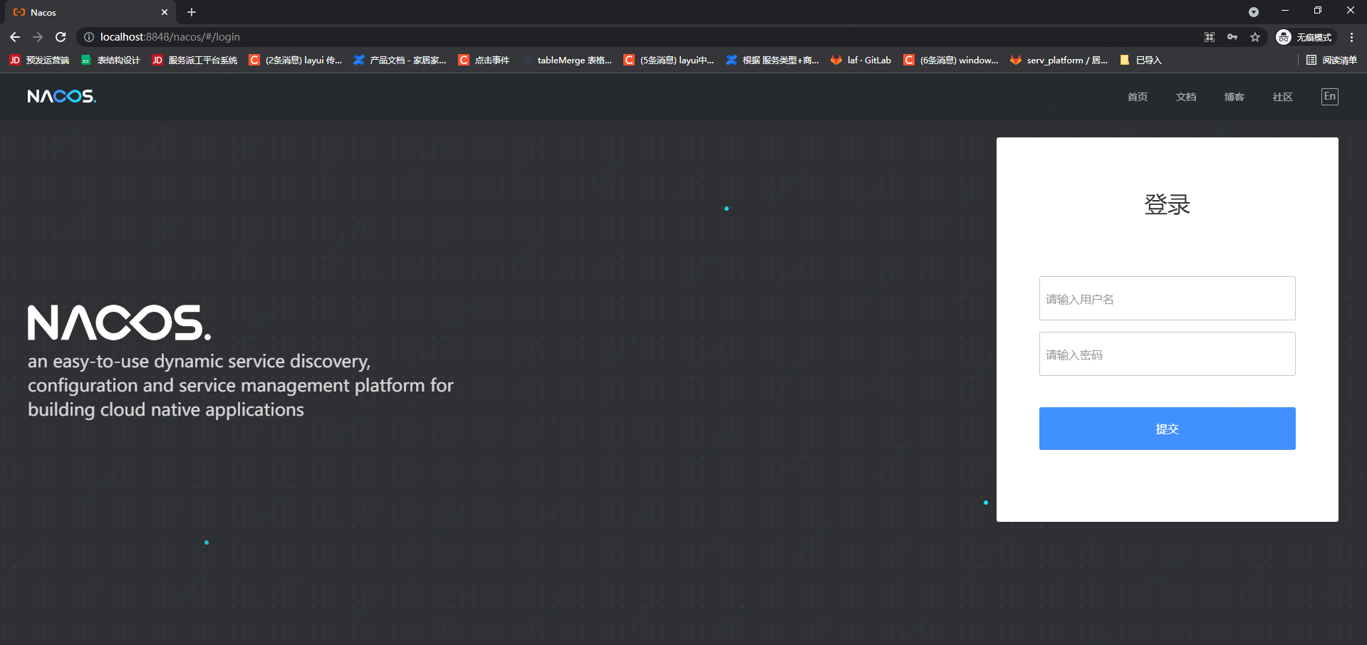 - 命令运行成功后直接访问http://localhost:8848/nacos,默认账号密码都是nacos