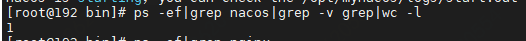 - ps -ef|grep nacos|grep -v grep|wc -l