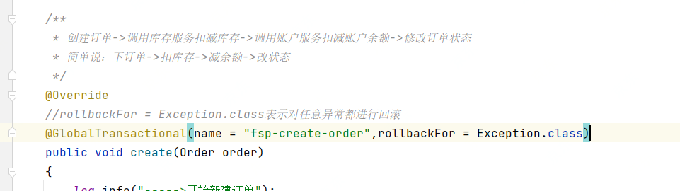 用@GlobalTransactional标注OrderServiceImpl的create()方法。 2001工程