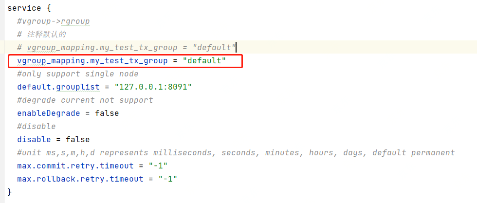 主要修改:自定义事务组名称+事务日志存储模式为db +数据库连接信息