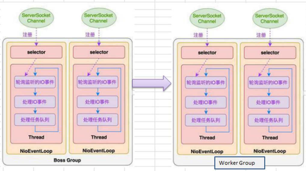 - NioEventLoopGroup相当于一个事件循环组, 这个组中含有多个事件循环, 每一个事件循环是NioEventLoop