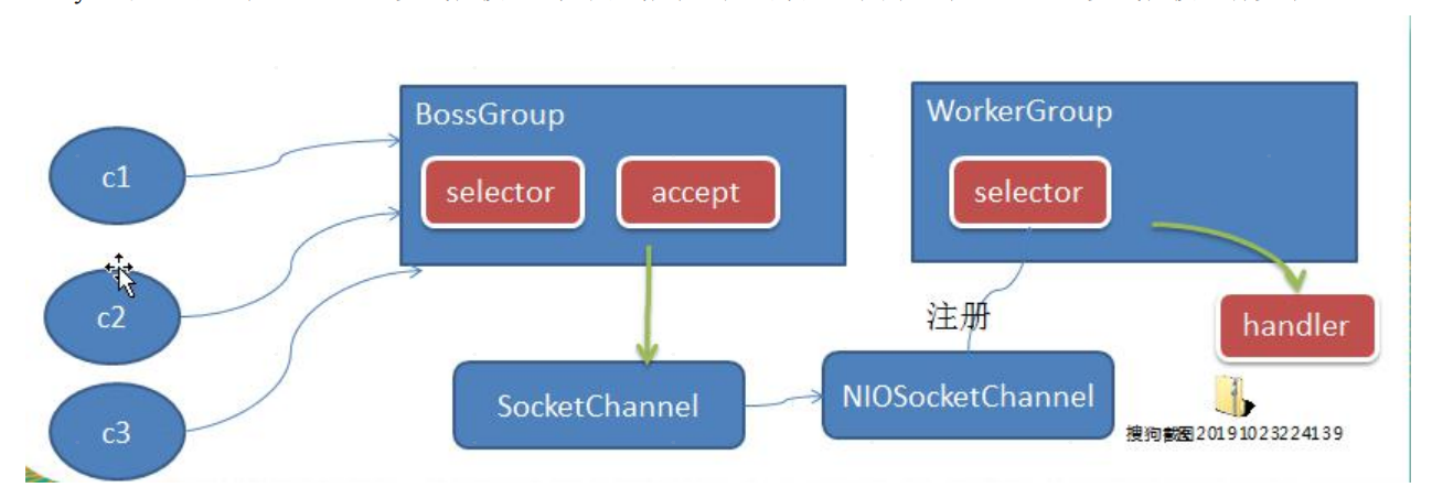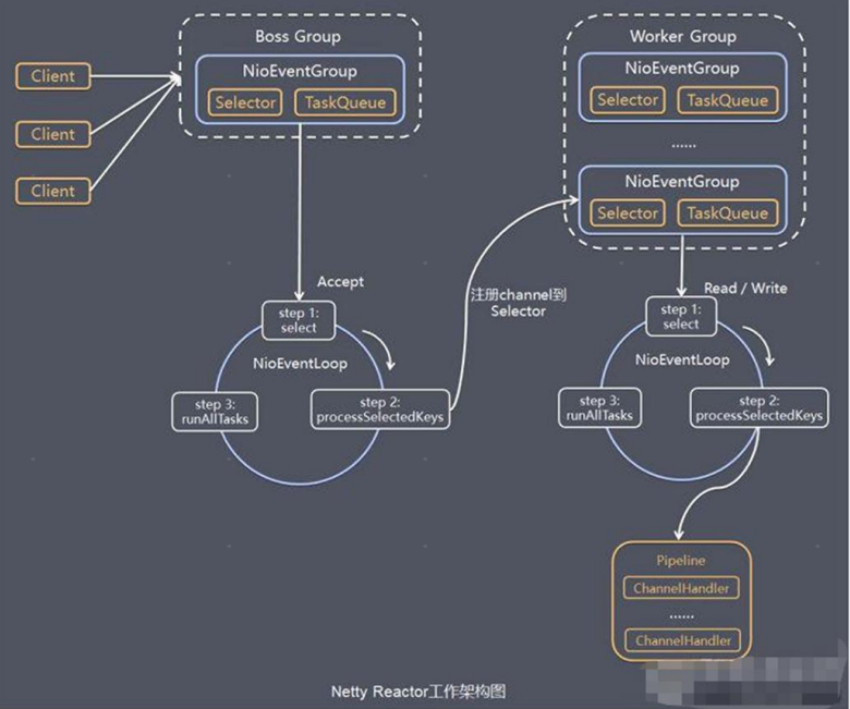 - 当Worker线程监听到selector中通道发生自己感兴趣的事件后,就进行处理(就由handler),注意handler经加入到通道
