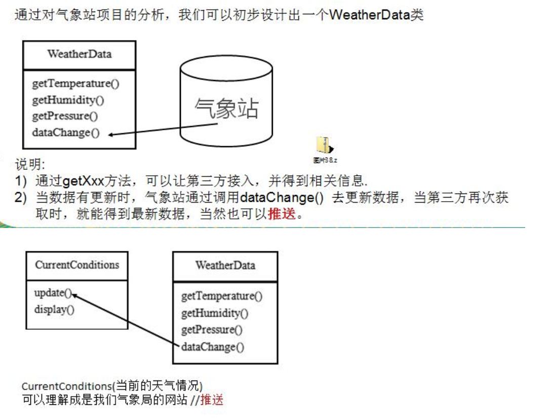 //在WeatherData中,当增加一个第三方,都需要创建一个对应的第三方的公告板对象,并加入到dataChange,不利于维护,也不是动态加入