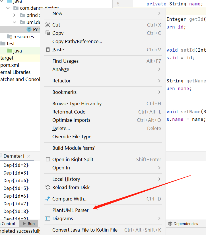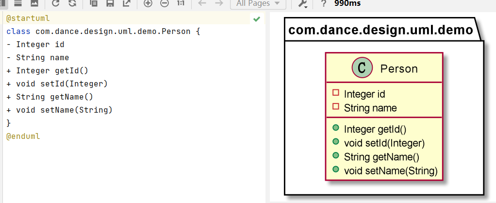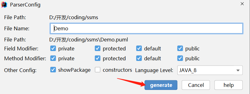 在这里教一个小技巧, 我们写完代码后不需要手动去画类图,可以直接使用PlantUML Parser解析出来