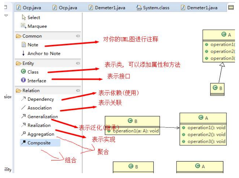 - 类之间的关系: 依赖, 继承, 实现, 关联, 聚合 和 组合