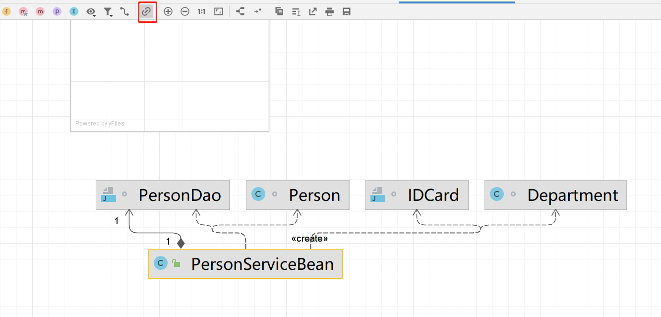 然后又回去看了看 Diagrams 发现居然可以展示依赖关系,上面有个小按钮, 还有组合关系居然也显示出来了, 而且也能编辑修改,突然感觉PlantUML不香了