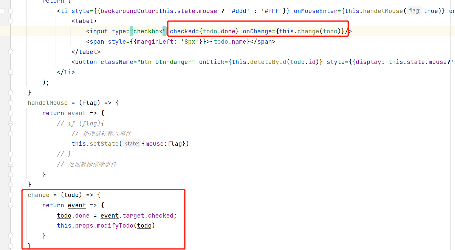checked每次都会渲染, 但是如果使用checked, 必须实现onChange函数, 处理状态改变, 不然就会无法取消选中,或者选中