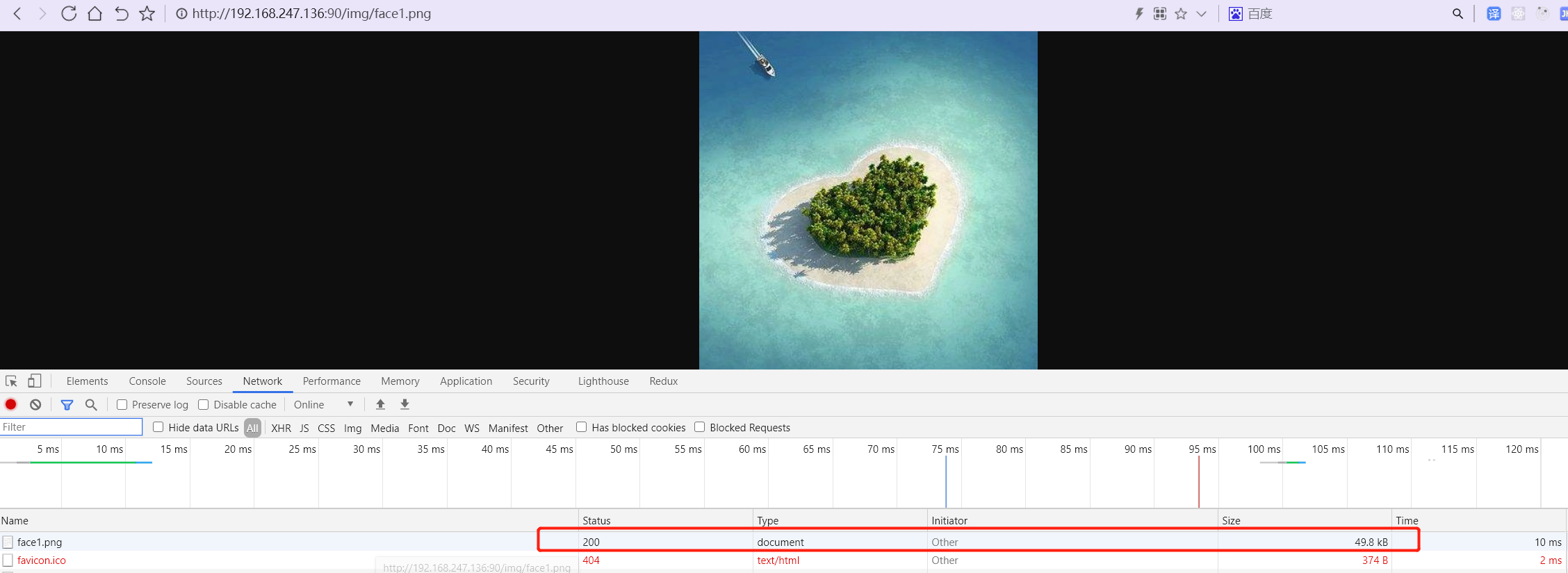 第一次请求为200, 大小为49.8kb, 代表是直接从服务器请求的