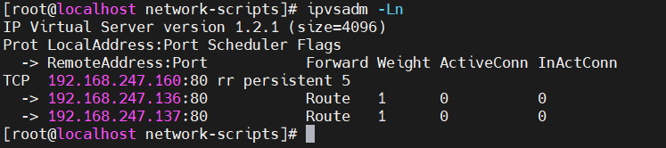 LVS的持久化过期时间已经过了,但是还是直接访问137节点了, 查看映射规则