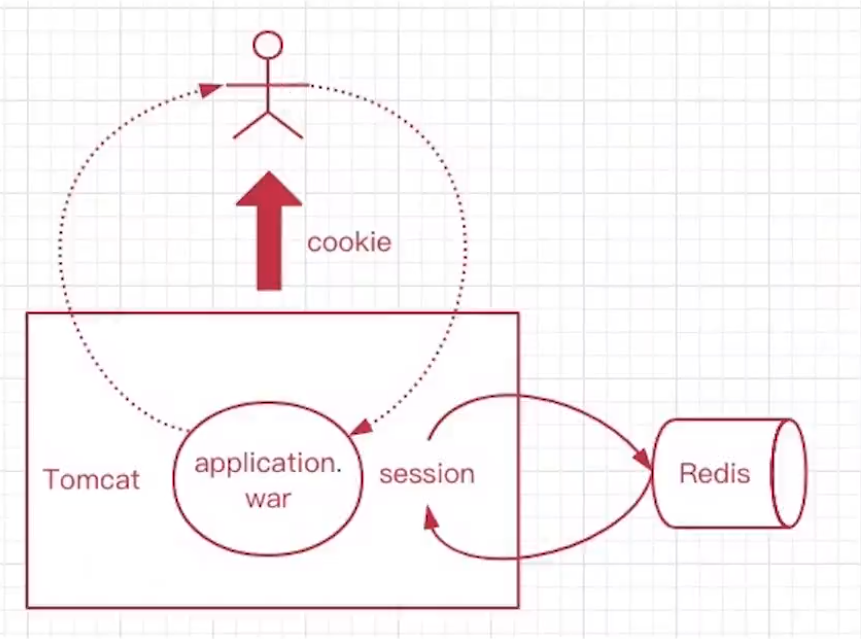 用户请求服务端, 由于动静分离, 前端发起HTTP请求, 不会携带任何状态, 当用户第一次请求以后, 我们手动设置一个Token, 作为用户会话,存入Redis中, 如此作为redis-session, 并且这个Token设置后放入前端cookie中(app或者小程序可以放入缓存), 如此后续交互过程中, 前端只需要传递Token给后端, 后端就能识别这个用户请求来自于谁了