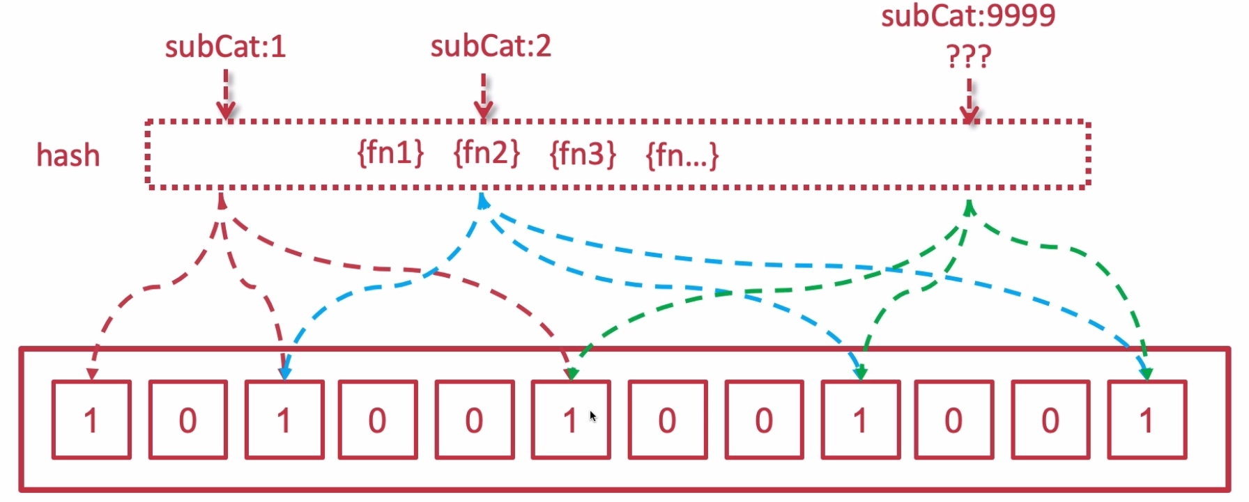 - 可以将存在的缓存, 位置设置为1, 然后当不存在的参数过来的时候, 会匹配到0上,这样就会直接返回不存在