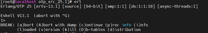 Erlang configuration: Erlang/OTP 25 [erts-13.1] [source] [64-bit] [smp:1:1] [ds:1:1:10] [async-threads:1]