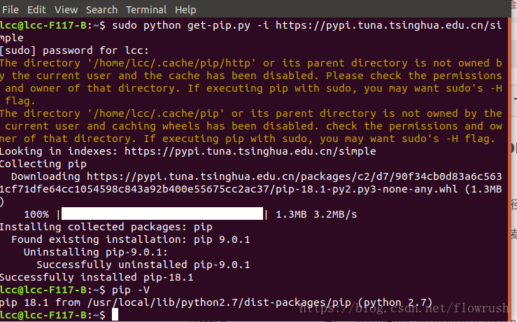 由于需要用到pip,所以在Ubuntu上安装了一个,由于Python是2.7版本的,所以装的并不是pip3。