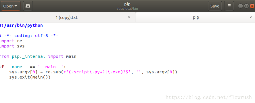 用gedit修改pip