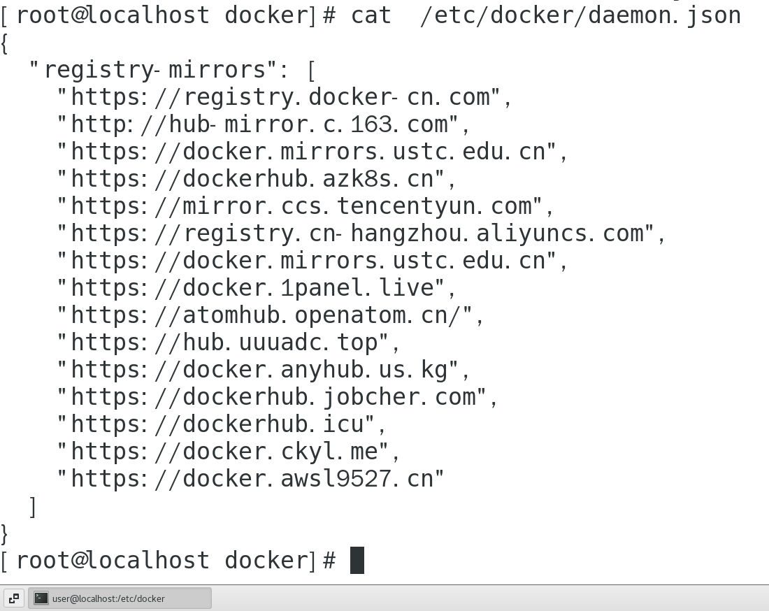 cat /etc/docker/daemon.json