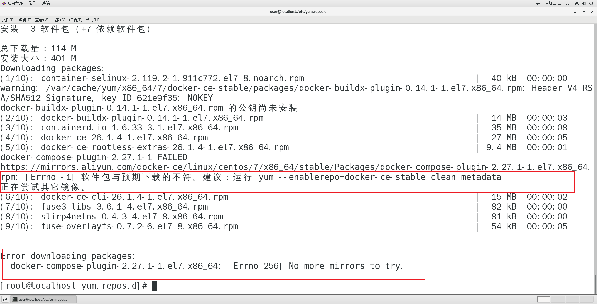 如果出现以下问题可以先不用管,接着往下做,最后配置完docker镜像后再验证一次即可成功