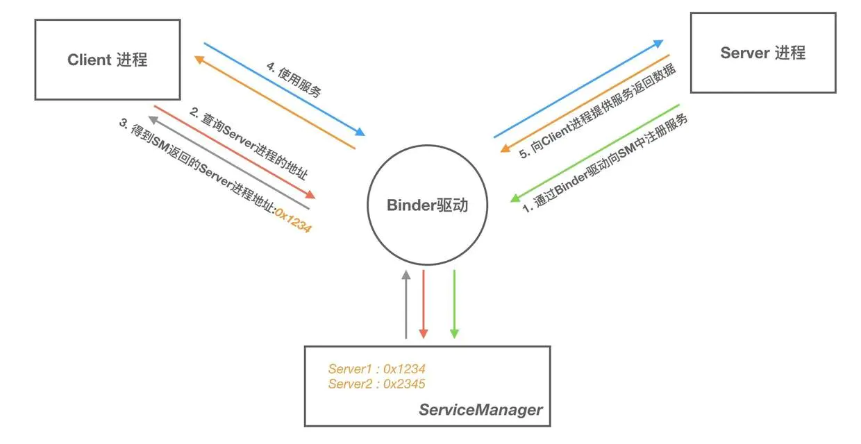 - Server&Client:服务器&客户端。在Binder驱动和Service Manager提供的基础设施上,进行Client-Server之间的通信。