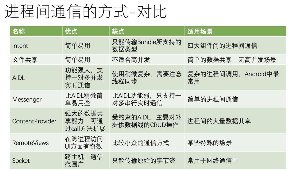 所有运行在不同进程的四大组件(Activity、Service、Receiver、ContentProvider)共享数据都会失败,这是由于Android为每个应用分配了独立的虚拟机,不同的虚拟机在内存分配上有不同的地址空间,这会导致在不同的虚拟机中访问同一个类的对象会产生多份副本。比如常用例子(通过开启多进程获取更大内存空间、两个或者多个应用之间共享数据、微信全家桶)。