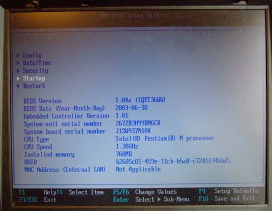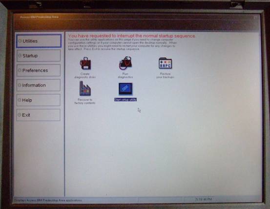 开机后按“Access IBM”按钮,出现BIOS配置界面: