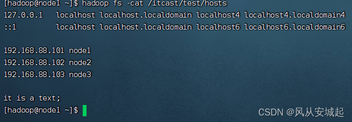 2.上传/etc/hosts文件到hdfs的/itcast/test内