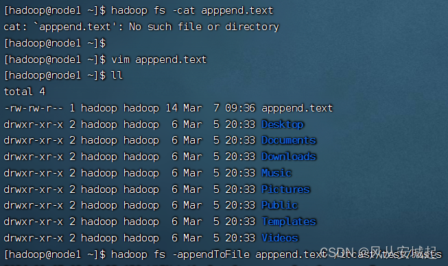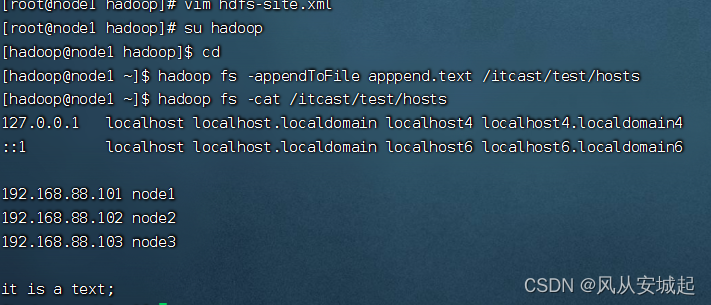 4.向hdfs中上传的文件追加:test到最后一行