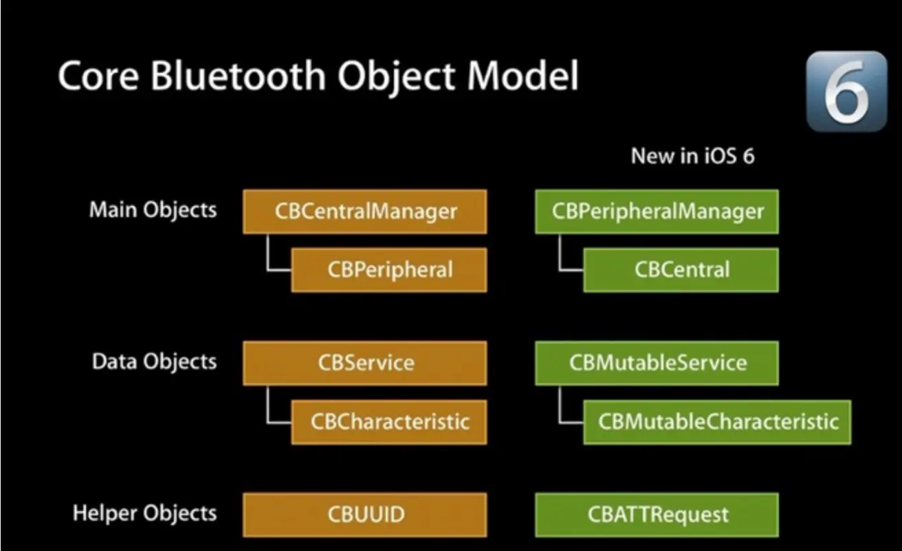 CoreBluetooth框架的核心其实是俩东西:peripheral和central,对应他们分别有一组相关的API和类
