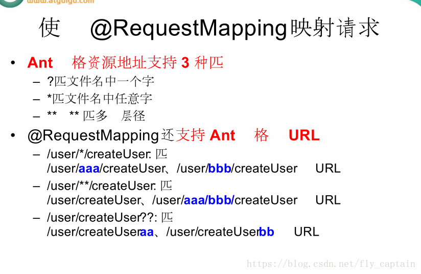 注: * 1. 使用 @RequestMapping 注解来映射请求的 URL