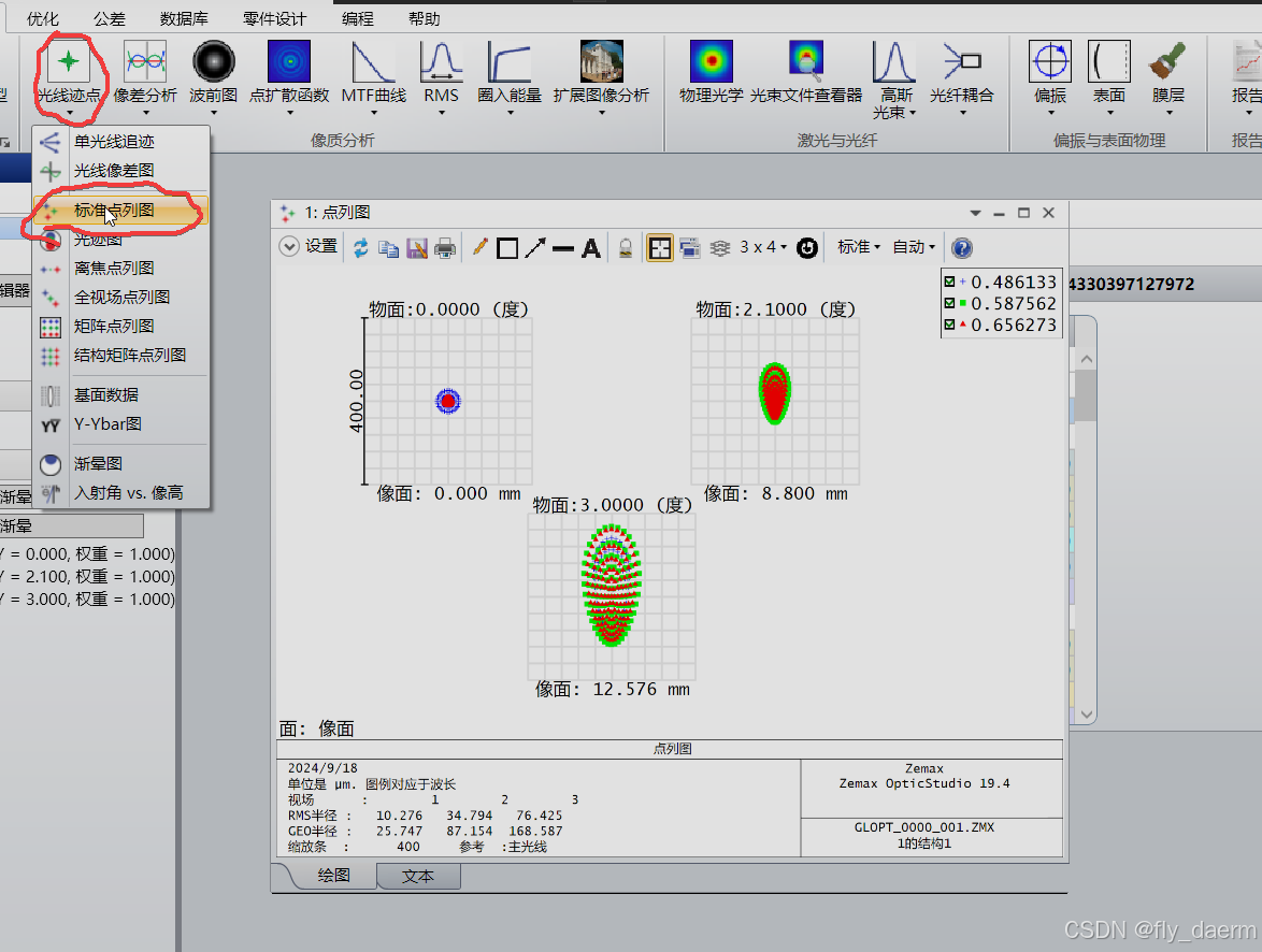 注意视场角的选择,视场角一般选择0、0.707、1三个视场