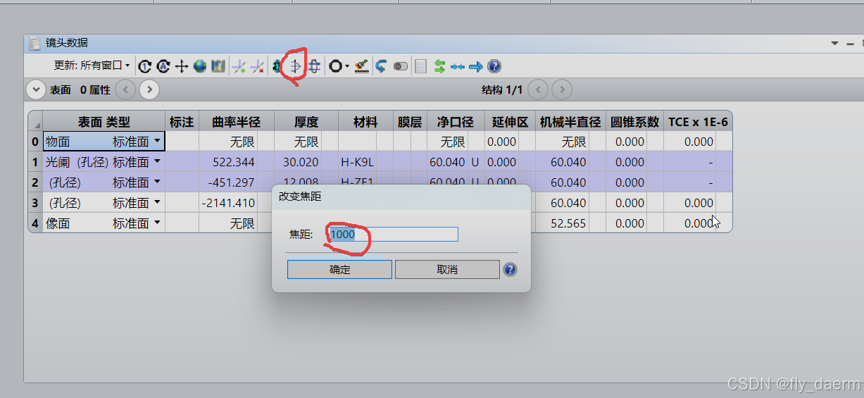 修改焦距(这里是先整体缩放镜头焦距,之后再考虑单独用EFFL优化下)。