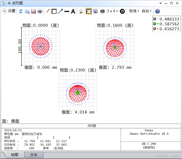 视场角为三个视场角。分别为0.23、.016(0.7*0.23)、0。