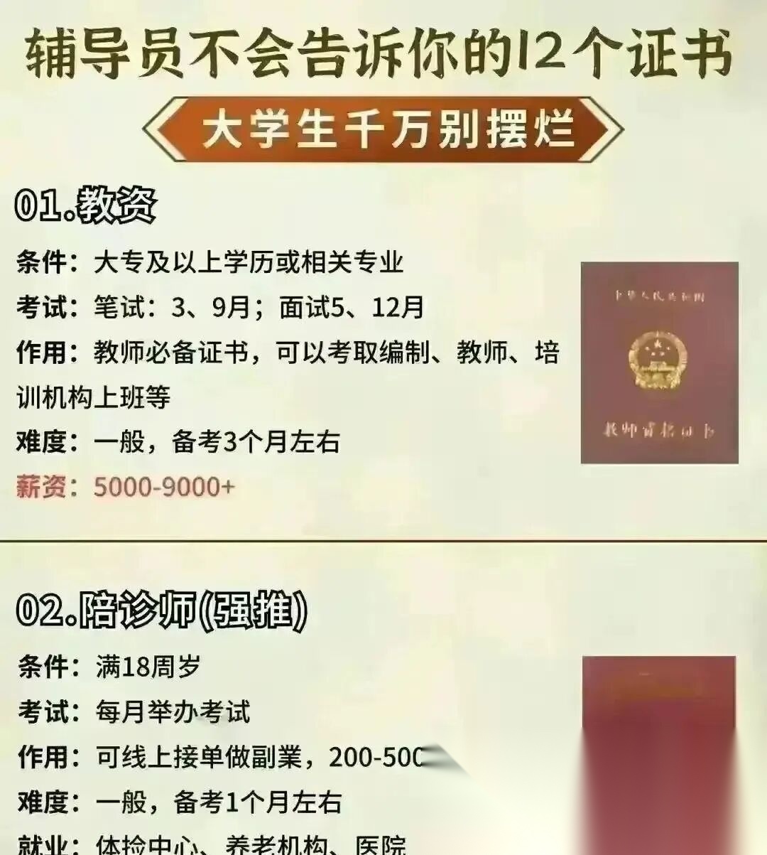 最后送大家一句话:选择大于努力,提前布局这些小众但前景广阔的证书,比盲目跟风考公务员、教师资格证要明智得多!