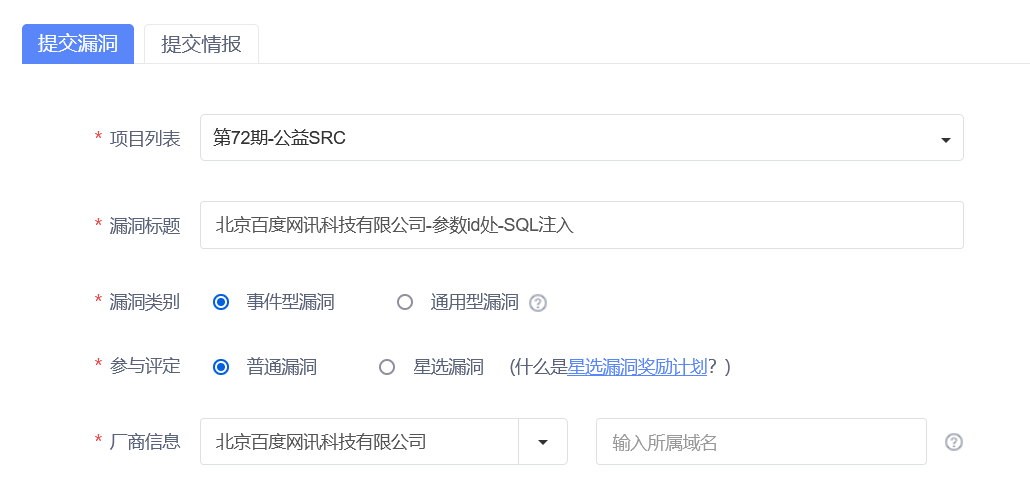 :一般都是Web漏洞,然后具体是什么漏洞就写什么,这里是SQL注入。